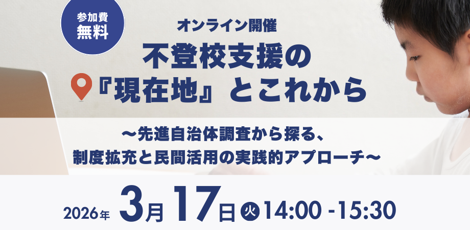 - ●対象: 自治体・教育委員会の不登校支援ご担当者、フリースクール等民間団体の方、不登校支援に関心のある地方議会議員の方、大学・学術関係者、メディア関係者