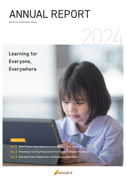 日頃より、NPO法人eboardの活動にご理解ご協力を賜り、誠にありがとうございます。この度、eboardの活動内容を海外の皆様にもご紹介するため、2024年度 英語版活動報告書 (英語版)が完成し、公開いたしました。eboardの活動の概要を英語でもご確認いただけます。ぜひご一読ください。