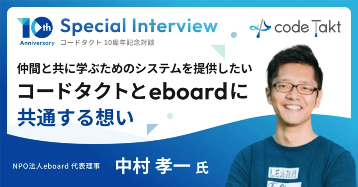 これを記念したスペシャルインタビュー企画に、eboard代表の中村がお招きいただき、同社代表取締役の後藤正樹様と対談させていただきました。2023年に10周年を迎えたeboardにとって、コードタクト様は10年以上にわたり相互啓発し学び合ってきた大切な「EdTech仲間」でもあります。そんな両代表がともに大切にしている思いや、「教育の未来」について深く語り合っています。記事は、以下のリンクよりぜひご覧ください。